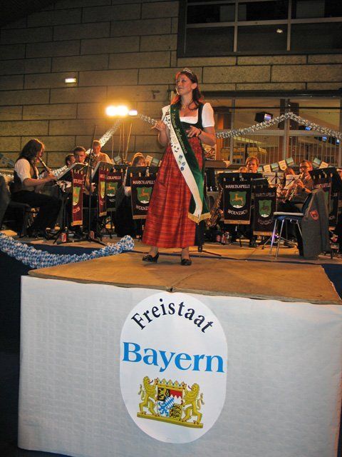 Am Nachmittag setzte Regen ein. Der zweite Umzug wurde kurzerhand zum Standkonzert in der Eissporthalle, wo am Abend das Bayerische Bierfest stattfinden sollte. 300 Gäste hatten sich Karten reserviert. Die Halle war vom Ski- und Fußball-Club der Stadt bestuhlt und dekoriert wurden. Hinzu kamen vom Freistaat Bayern bayerische Girlanden, Tischdecken, Servietten, Speisenkarten und Deckenhänger, die die Wolnzacher mitbrachten. Das erste Bierfest mit einer echten bayerischen Kapelle, vielleicht das erste bayerische Bierfest in ganz Frankreich, konnte beginnen.