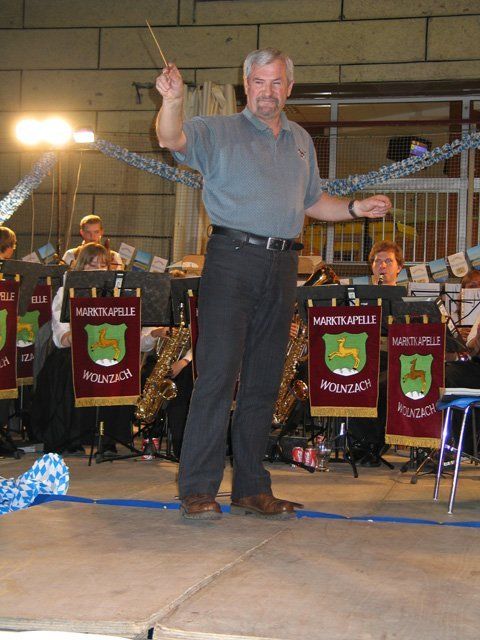 Die Franzosen servierten am Abend eine Art Schlachtschüssel auf Sauerkraut "Colossale Choucroute" - schmeckte hervorragend wie alles in Le Mont-Dore - das Bier von Heiniken wurde in Klarsichtplastikbechern, wenigen Gläsern und Karaffen ausgeschenkt. Beim nächsten Mal müssen es Bierkrüge und original bayerisches Bier sein. So wünscht es sich Bürgermeister Dubourg. Die Begleiter aus Wolnzach, allen voran der Kapellen-"General" Hans Frank, zeigten, welche Freude die Bayern bei einem Volksfest mitbringen. Nach jedem dritten Stück wurde das Prosit auf die Gemütlichkeit zelebriert. Die Franzosen riefen das schallende "Prost" nach den Paukenschlägen mit. Die Volksfeststimmung schwappte schnell auf alle Gäste über. Ein grandioser Abend, wie es sich Dubourg nur erträumt hatte.