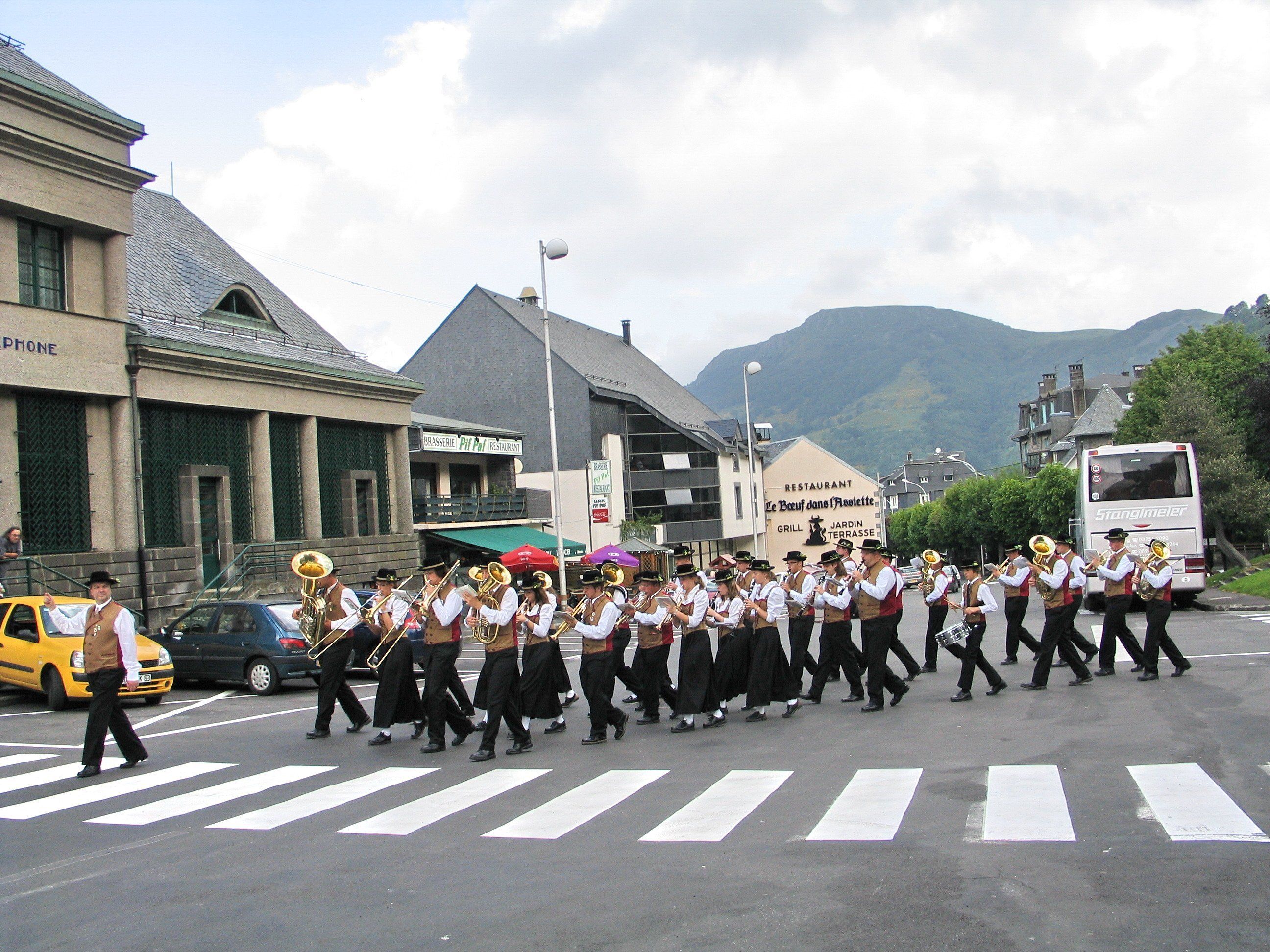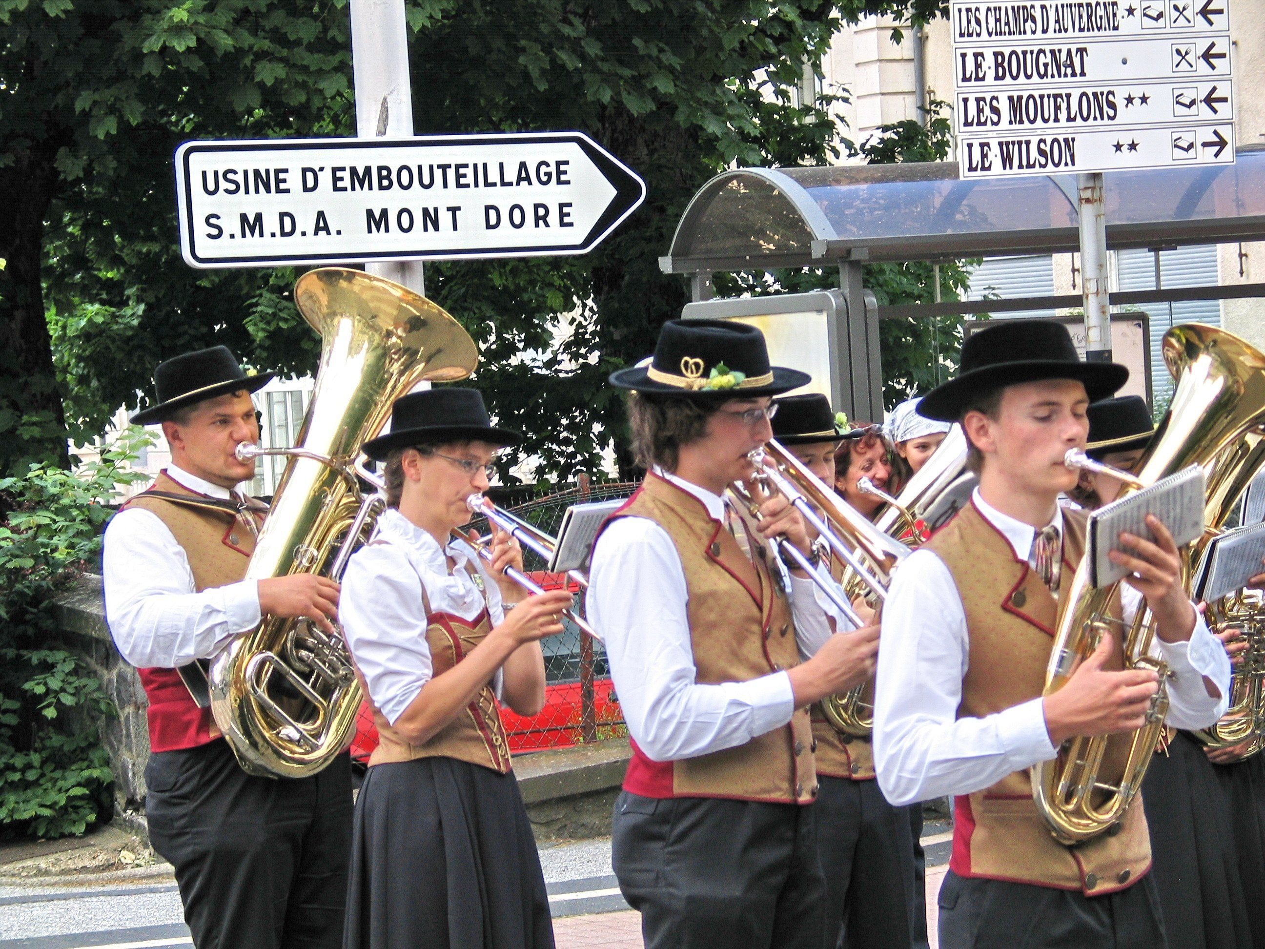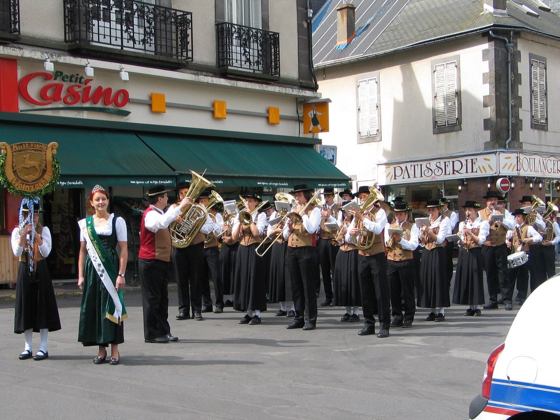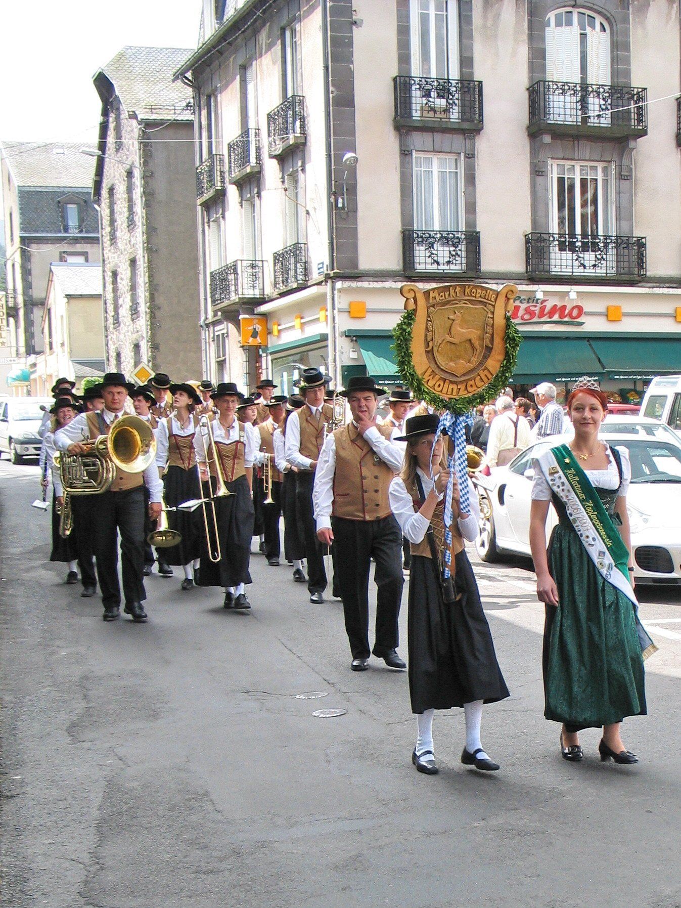 Am Pfingstsamstag, 10.45 Uhr, erklangen im französischen Kurstädtchen am Sancy Massiv Paukenschläge, bayerische Marschmusik setzte ein. So etwas hatte der Ort noch nicht erlebt. Die Wolnzacher Marktkapelle marschierte durch die hohen Straßen, voraus fuhr ein Stadt-Gendarm. Immer wieder Standkonzerte. Die Einwohner von Le Mont-Dore und ihre Gäste jubelten. Wie schön war diese Musik für sie. Ja die Franzosen mögen Marschmusik, und wenn dann die Klarinetten so fröhliche Klänge oben drauf setzen, dann finden sie ihre Lebenslust bestätigt. Weit sind sie nicht von einander emotional entfernt: die Wolnzacher und die Bergfranzosen. Als am Schluss des Umzugs die Marktkapelle die Marsaillaise spielte, waren die Herzen der Gastgeber gänzlich erobert.