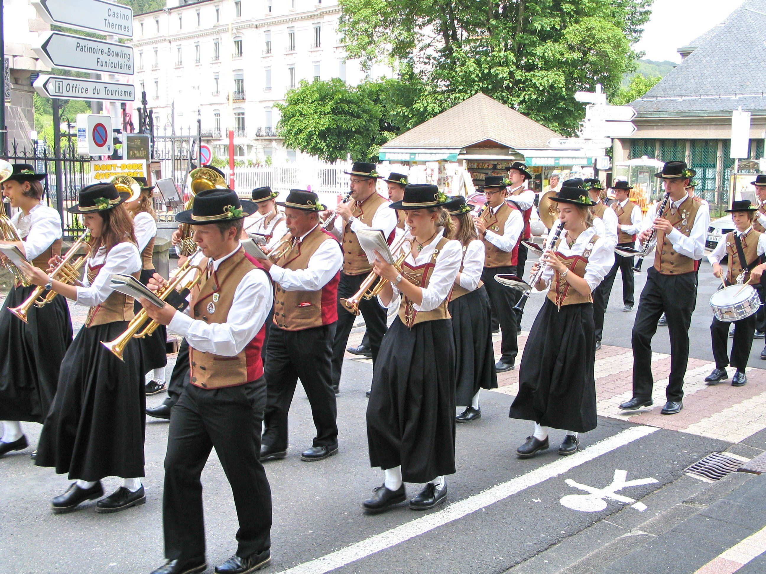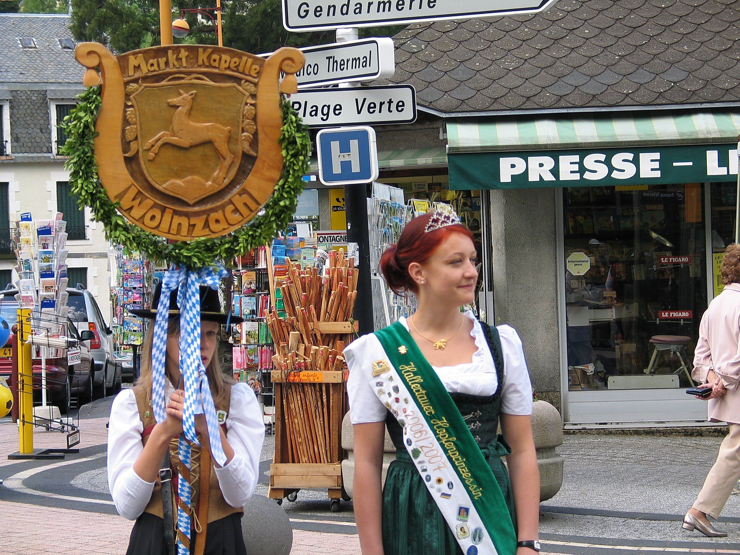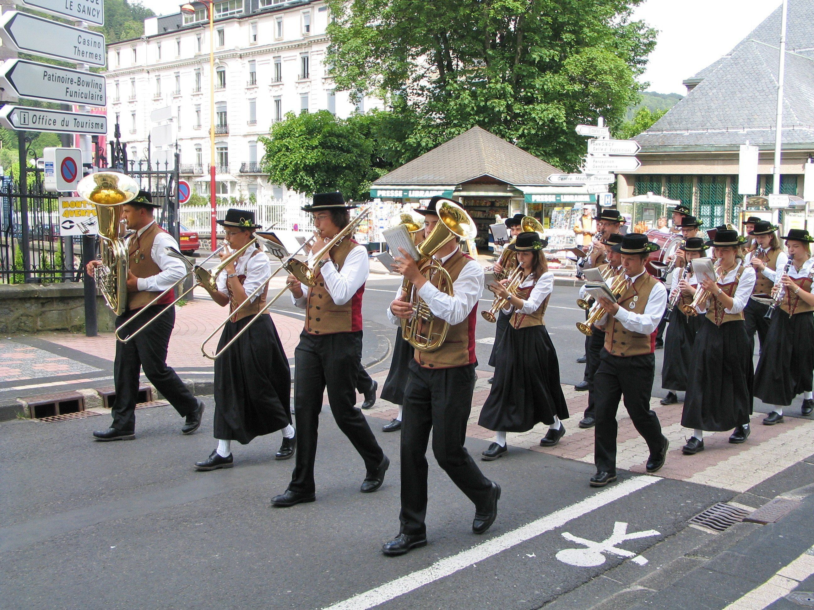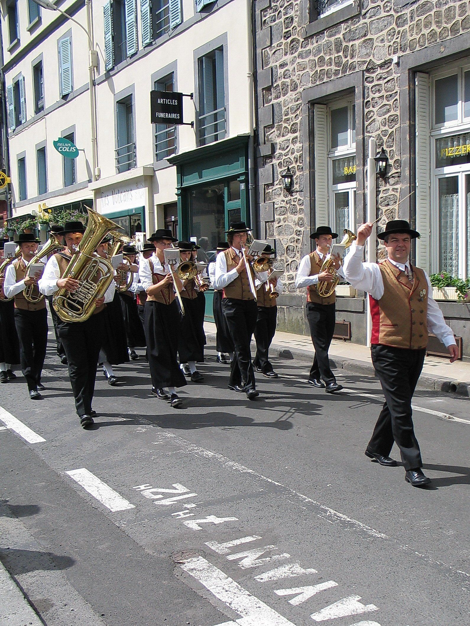 Am Pfingstsamstag, 10.45 Uhr, erklangen im französischen Kurstädtchen am Sancy Massiv Paukenschläge, bayerische Marschmusik setzte ein. So etwas hatte der Ort noch nicht erlebt. Die Wolnzacher Marktkapelle marschierte durch die hohen Straßen, voraus fuhr ein Stadt-Gendarm. Immer wieder Standkonzerte. Die Einwohner von Le Mont-Dore und ihre Gäste jubelten. Wie schön war diese Musik für sie. Ja die Franzosen mögen Marschmusik, und wenn dann die Klarinetten so fröhliche Klänge oben drauf setzen, dann finden sie ihre Lebenslust bestätigt. Weit sind sie nicht von einander emotional entfernt: die Wolnzacher und die Bergfranzosen. Als am Schluss des Umzugs die Marktkapelle die Marsaillaise spielte, waren die Herzen der Gastgeber gänzlich erobert.