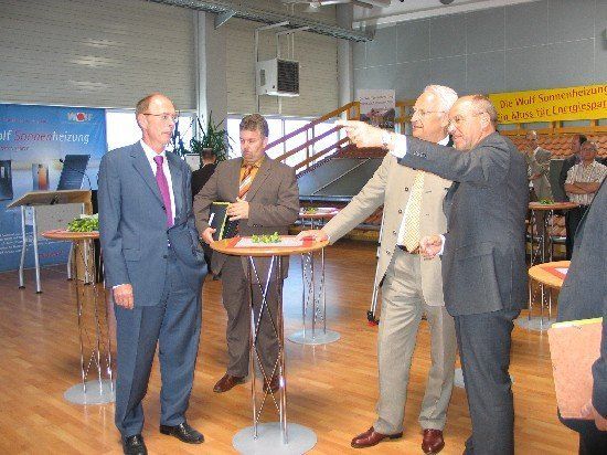 Kurz vor dem Ende seiner Amtszeit besuchte Ministerpräsident Dr. Edmund Stoiber die Firma Wolf Heiztechnik GmbH in Mainburg. Geschäftsführer Alfred Gaffal zog sich unmittelbar nach der Ankunft des Ehrengastes mit diesem zu einem Vier-Augen-Gespräch zurück. Anschließend besichtigte der Ministerpräsident das Firmengelände des größten Arbeitgebers im Landkreis Kelheim. Den Grund seines Besuches formulierte Stoiber so: "Ich informiere mich vor Ort persönlich über die Entwicklung der Unternehmen und damit auch des Arbeitsmarkes". Was er sah, beeindruckte ihn sichtlich: "Die Wolf GmbH ist ein großartiges, innovatives Unternehmen".