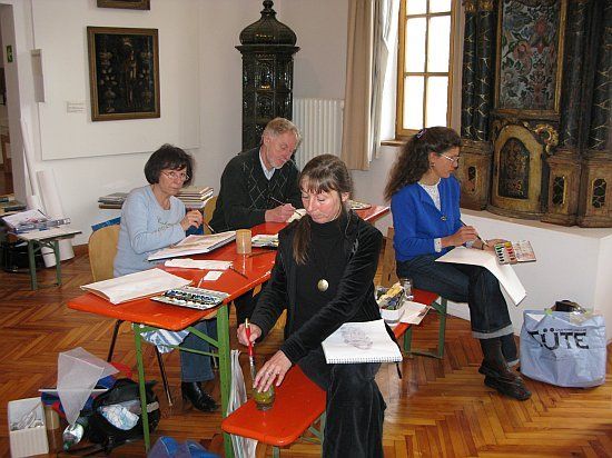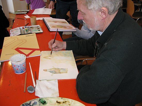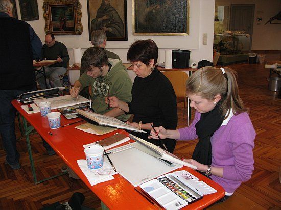 Mainburg, 15.2.09 (ted). Pünktlich um 10 Uhr startete am Samstag die 1. Winterakademie, zugleich die 1. Akademie in Mainburg überhaupt. Prof. Fridhelm Klein von der Akademie der Bildenden Künste München betreute 14 Wochenend-Studenten und -Studentinnen im Alter von 14 bis 64. Thema: Portraitmalen mit Stift und Aquarell. Das Heimatmuseum bot sich als idealer Ort an. Am Sonntag 18 Uhr hatten alle einen großen Schritt in ihrer künstlerischen Ausbildung absolviert.