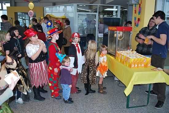 Thomas Wallner begrüßte alle großen und kleinen Närrinnen und Narren herzlich in seinem Haus, das er auch dieses Jahr wieder für den Faschingsnachmittag zur Verfügung gestellt hatte. Lustige Luftballontiere waren ebenso der Hit bei den Kleinen wie die Popcorn Maschine, die bei dem großen Andrang an Leckermäulchen gar nicht mehr mit dem Produzieren nachkam. Getränke und Krapfen satt, standen für die vom Tanzen und Toben hungrigen Kinder den ganzen Nachmittag über bereit.