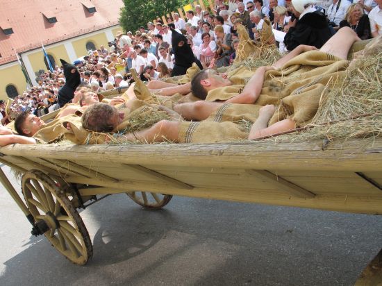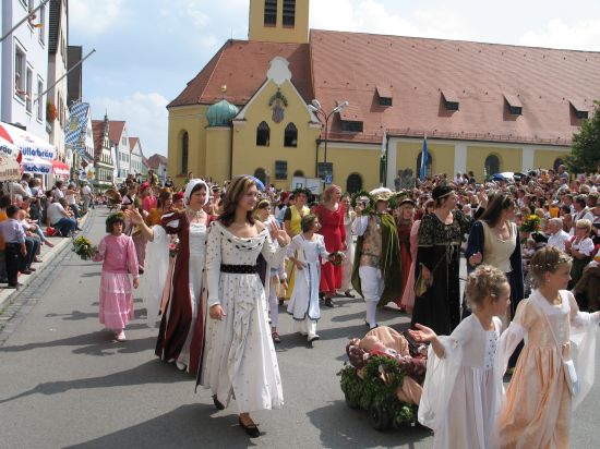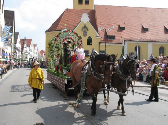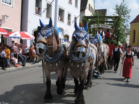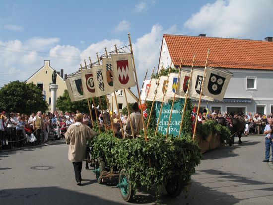 Alle drei Jahre organisieren Privatleute und Wolnzacher Vereine in Zusammenarbeit mit der Marktgemeinde den Historischen Festzug, der nicht nur Besucher und Gäste aus der Hallertau in die Hopfenmetropole lockt. Selbst Stammgäste aus ganz Deutschland lassen sich das farbenprächtige Spektakel zum Hallertauer Volksfest nicht entgehen, wenn Germanen, Römer, phantasievoll geschmückte Wagen, adelige Reiter und hübsche Hofdamen die Straßen des Marktes in ein Fest der Begeisterung verwandeln.Genießen sie die ganze Faszination des Zuges hier auf hallertau.info!