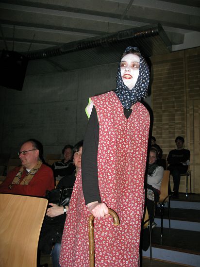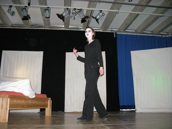 Wie, so fragt man sich, kommt in diesem dekadenten Reigen der Doppelmoral die Moral ins Spiel? Die Schüler im Kurs hatten ein Problem: Das Stück hat zehn Rollen, der Kurs hat elf Mitglieder. Der Kurs sah dies als echte Herausforderung, in die Dramaturgie des Stückes kreativ einzugreifen, und hat eine „elfte Rolle“ entworfen und perfekt ausgebaut – die Moral. Antonia Schultes hat sie „in vielerlei Personen“, nicht nur als alte Hexe, wunderbar flexibel und wandelbar verkörpert, und sie bietet jetzt endlich die Gelegenheit, mit der Begierde des Begeisterten über die Schauspieler herzufallen.