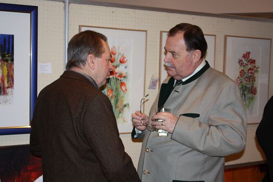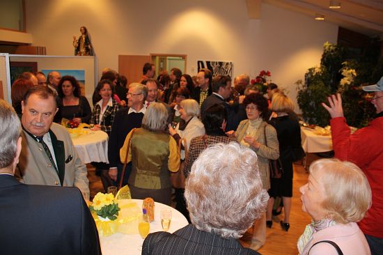 Bereits 25 Jahre besteht der Kunst- und Hobbyverein Wolnzach e.V. und zeigt mit dieser hochqualitativen Ausstellung das künstlerische Potential seiner Mitglieder Eine Vielzahl von Ehrengästen drängte sich demzufolge auch um die Exponate. Landrat Josef Schäch besuchte die Vernissage und selbst Gäste aus Österreich nahmen die lange Anfahrt in Kauf. Nach Grußworten des 1.Bürgermeisters Jens Machold und dem zuständigen Gemeinderat für Kultur, Museum und Heimatpflege Alois Sigmund wurde die Ausstellung von Gisela Brandl-Giesel eröffnet. Für die musikalische Untermalung sorgte das Musikduo „Die Abstauber“ und ein sehr schmackhaftes Buffet rundete den Kunstgenuss kulinarisch ab. Die Ausstellung ist am 21. und 22.März noch von 10 bis 17 Uhr geöffnet. Unbedingt sehenswert!