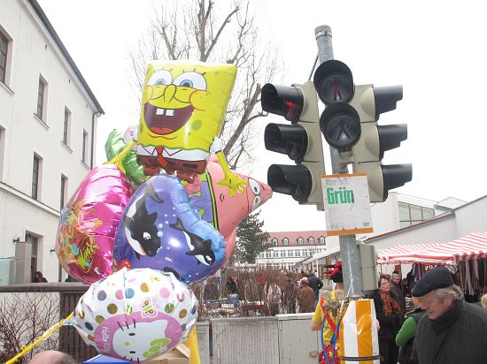 Noch immer kein Frühling in Sicht, aber auf dem zweiten Fastenmarkt gab es fast kein Durchkommen mehr, Markt, Motorradausstellung und verkaufsoffener Sonntag hatte praktisch jeden zu einem Bummel über die Preysingstraße gelockt. Das Angebot war bewährt und breit, die Geschäfte hatten geöffnet, sogar ein Supermarkt wurde prompt überrannt bei der Sonntagsöffnung. Die Motorradausstellung war zusätzlicher Magnet und im Rathauskeller begrüßte Lorenz Trapp interessierte Besucher zu seinen hängenden Wörtern.