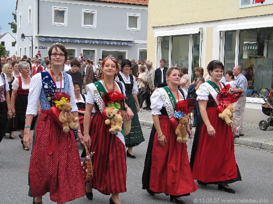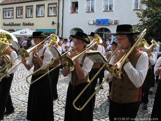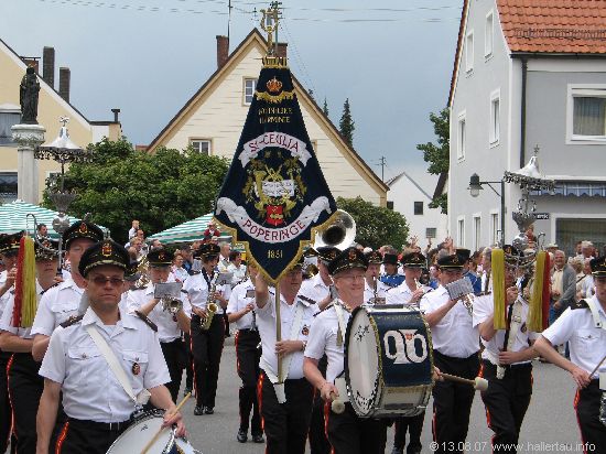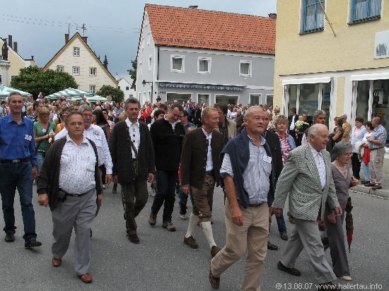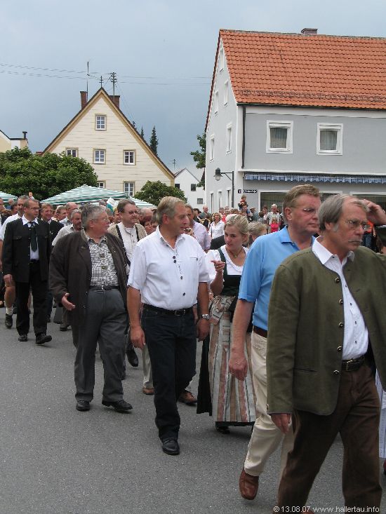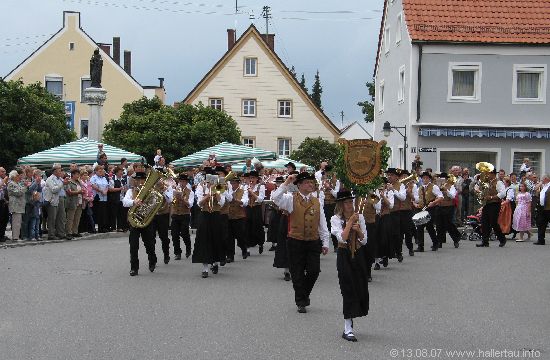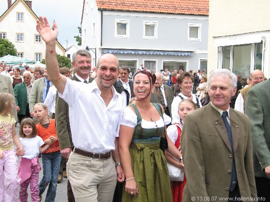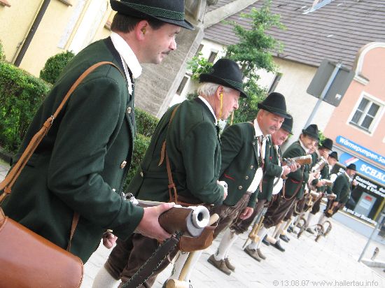 Als göttliche Fügung bezeichnete Bürgermeister Josef Schäch das "Glück" mit dem Wetter zur Volksfesteröffnung. Genau zwei Stunden ohne Regen und durchsetzt mit hoffnungsvollem Sonnenschein waren den Wolnzachern am Samstagnachmittag vergönnt, nachdem es am Vormittag nur geregnet hatte. Diese zwei Stunden genügten für das Standkonzert der Poperinger Kapelle "St. Cecilia" (15 Uhr, Marienplatz), der Aufstellung zum Einzug unter Klängen abwechselnd St. Cecilias und der Marktkapelle mit Bier und Bedienungen um 15.30 Uhr auf dem Marienplatz und dem Zug zur Festhalle gegen 16 Uhr mit Schüssen der Böllerschützen. Gegen 16.30 Uhr schüttete es schon wieder.