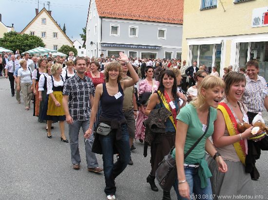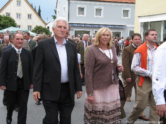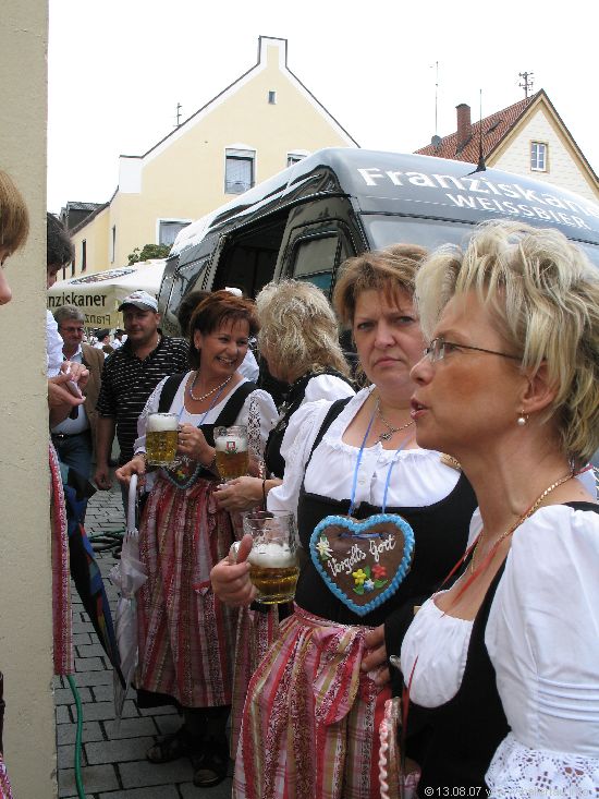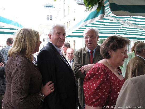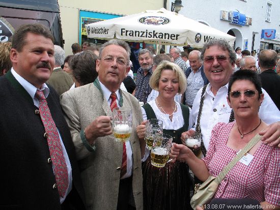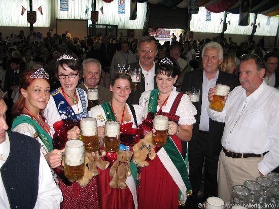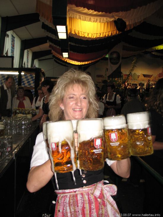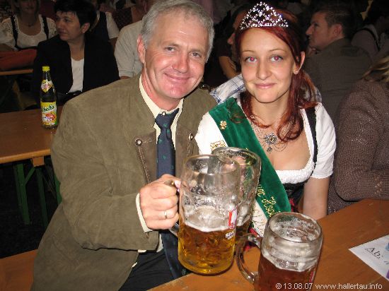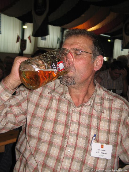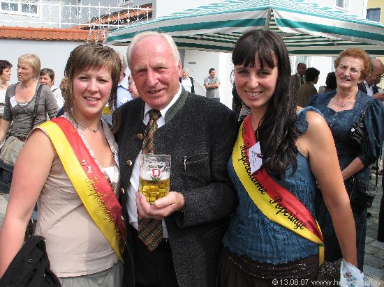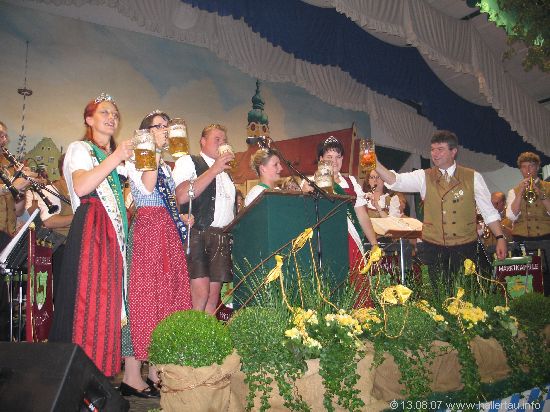 So endete auch seine Rede mit einem Bekenntnis zum Realismus, zum Pragamtismus, für die Spatzen gegen die Tauben. Glasnost hätte nie in Wolnzach gefordert werden müssen. Seine Politik wäre höchstens zu sprunghaft gewesen. So endete das "Wort zum Sonntag" eher bescheiden. Die Marktkapelle spielte ein Prosit nach dem anderen. Vier Königinnen (3 x Hopfen, 1 x Musik) dirigierten gleichzeitig auf der Bühne. Und draußen regnete es.