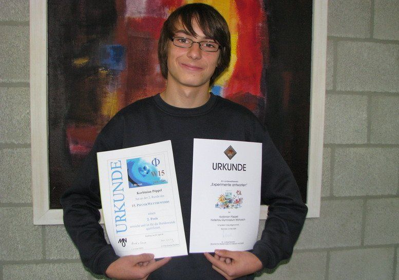 In den naturwissenschaftlichen Wettbewerben "Experimente antworten" und "MNU Physik" ist Korbinian Pöppel vom Hallertau Gymnasium Wolnzach eine Runde weiter gekommen.