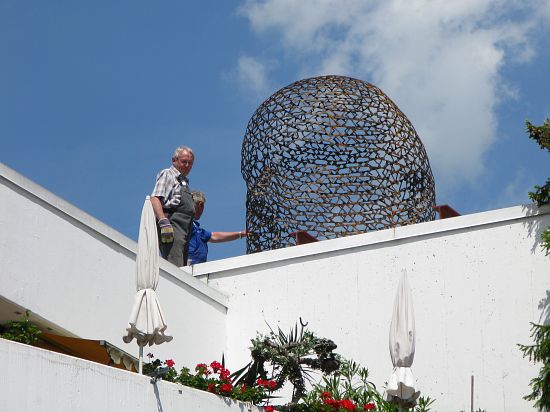 Seit Mittwoch blickt „Der Kopf“ über Wolnzach. Vom Treppenhaus des Medienhauses Kastner. Nachts illuminiert. Der Künstler Christian Wolff aus München fertigte ihn aus Cortenstahlelmenten. Er wiegt 300 kg und soll später den Neubau des Medienhauses dauerhaft zieren. Die Entstehungsgeschichte, das „making of" des "Kopfes", erklärt eine Fotoausstellung im Deutschen Hopfenmuseum (ab Dienstag).