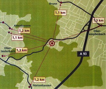 Damit erfülle der Standort auch die Voraussetzung, sich in der Nähe einer öffentlichen Erdgasleitung (ca. 2 km bei Brunn) zu befinden, denn das erzeugte Bioerdgas soll nicht „verstromt“, sondern ins Netz eingespeist werden. Für den Standort sprechen auch die zentrale Lage im Hopfenanbaugebiet und die relativ große Entfernung zur nächsten Wohnbebauung (mehr als 1 km nach Oberempfenbach und Oberlauterbach).