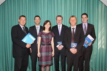 Gleichzeitig sind die Gewerbeflächen auf Grund dieses Systems im Internet präsent und können von Investoren gefunden werden. Die Vertreter der Kommunen zeigten sich von den Lösungen sehr angetan und sind sicher, dass dadurch eine bessere Bearbeitung der Aufgaben gewährleistet ist. Felix Kummer (AKDB), Roland Höger (AKDB), Michaela Sanhieter (GIS-Beauftragte, Landratsamt Pfaffenhofen), Richard Meyer (AKDB), Andreas Fritsche (IHK), Peter Beyer (Wirtschaftsentwicklung, Landratsamt Pfaffenhofen)(v.l.) |