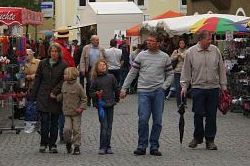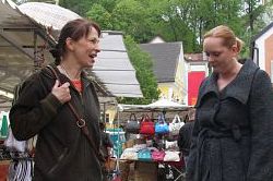 Leider zeigte sich der Mai nicht von seiner wonnigsten Seite, dunkel wolkenverhangen lockte er nicht so viele Besucher in die Stadt. Der zweite Markt des Jahres war schon Thema von Stadtratsdebatten, weil auch viele Geschäfte gar nicht mehr öffnen und der heutige Ablauf bestätigte die Kritiker am Datum. Besucher, die den Weg fanden, vergnügten sich trotzdem, unterhielten sich, deckten sich ein mit Socken und Gemüseschälern, ließen sich Bratwürste und Fischsemmeln munden. |