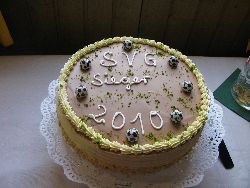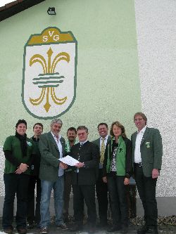 Mit der Aktion "Quantensprung 2010 – Vereinsarbeit im nächsten Jahrzehnt" fördern der BLSV und Lotto Bayern gezielt bayerische Sportvereine, die durch innovative Projekte auf sich aufmerksam gemacht haben. Wer also wäre besser dafür geeignet als der Verein aus dem Wolnzacher Ortsteil, der mittlerweile mehr Mitglieder hat als Geroldshausen Einwohner. "Sport für Alle" war der Tenor der SV-Bewerbung: Ein nachhaltiges Vereinsmanagement sorgte in den letzten Jahren für ein breites Sport- und Freizeitangebot für Jung und Alt zu einem überzeugend günstigen Preis. So wurde aus einem Fußballverein ein erfolgreicher Breitensportverein, der von Damengymnastik über Radsport, Laufsport, Inliner, Aerobic, Mädchenfußball und Schwimmen bis zu „Spiel & Spaß“ für Kinder und „Gaudi & Sport“ für Erwachsene alles bietet, was man, ja, richtig: was man von einem „normalen“ Sportverein gar nicht erwarten kann. Florian Weiß gratulierte und dankte dem Verein und dem Vorstand für dieses Engagement, dessen Bedeutung für die Gesellschaft und das Zusammenleben nicht hoch genug angesetzt werden könne. Anschließend gab's Kaffee und Kuchen, und wie sollte es auch anders sein: Auf die Torte hatte der Konditor in feinen Schriftzügen die Worte „SVG – Sieger“ gesetzt, eine Auszeichnung, die sicher genauso gut schmeckte wie die Torte ... |