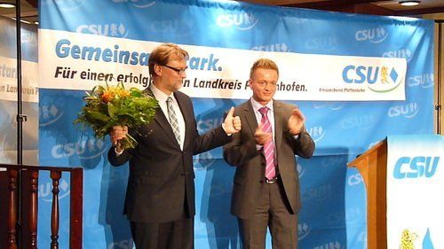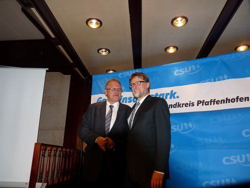 Es war nun doch nicht so eindeutig wie in „gut informierten Kreisen“ lange vermutet: Fünf Kandidaten standen bei der Kreisvertreterversammlung der CSU auf dem Treppchen im Gasthaus Bogenrieder zu Pörnbach, als es darum ging, einen Kandidaten für die anstehende Landratswahl im Kreis Pfaffenhofen zu küren. Das Rennen machte – in der Stichwahl mit Hohenwarts Bürgermeister Manfred Russer – dann doch Martin Wolf, CSU-Ortsvorsitzender in der Kreisstadt. Es kommt zur Stichwahl zwischen Wolf und Russer, die Martin Wolf mit 76 von 148 Stimmen für sich entscheidet. Zuvor war Karl Straub als Kreisvorsitzender mit 146 von 152 Stimmen bestätigt worden. |