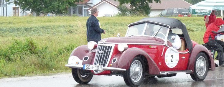 Die Hopfenlandtour der Donau-Classics führte das rund 180 Fahrer umfassende Feld in diesem Jahr auch nach Wolnzach. Bei Dauerregen und lauen Temperaturen umkurvten Roadsters, Rennwagen aber auch Cabriolets das Gewerbegebiet an der Schlagenhauser Mühle. Für Bewirtung und auch den nötigen Regenschutz sorgte Familie Neuber. Und trotz des schlechten Wetters fanden sich dort. zahlreiche Motorsportfreunde ein.