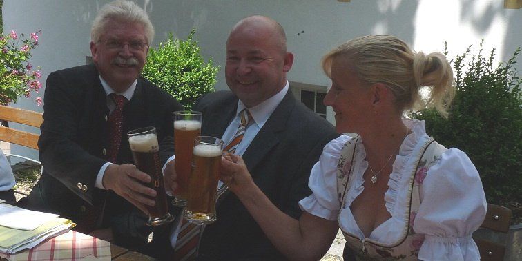 Wirtschaftsminister zeil und Landratskandidat Daschner beim gemütlichen Essen in der Klosterschenke.