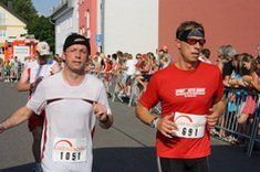 Lauf 10" - 2010: Geschafft aber Glücklich erreichten manche Läufer das Ziel am Wolnzacher Hopfenmuseum.