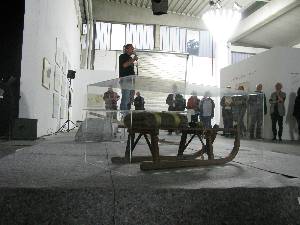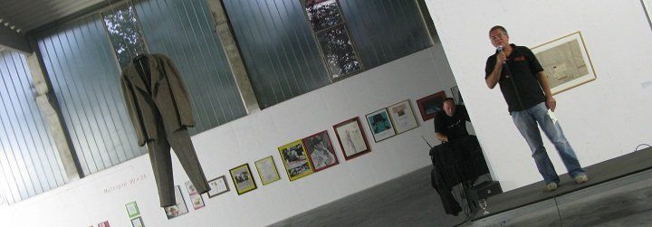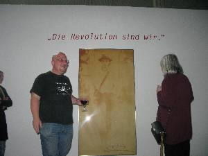 Der „ProjektVollBeauftragte“ Manfred „Mensch“ Mayer spazierte mit den faszinierten Besuchern der Vernissage verbal durch die Aussprüche des großen Kunstprofessors, Bildhauers, Zeichners und Aktionskünstlers Joseph Beuys, die über den Exponaten in roter Schrift die weißen Wände zieren, und führte in die Werke ein.