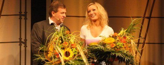 „Ich baue g’rad, und zwar ein Haus. Bei vielen löst die Fluch- und Schimpftiraden aus, wenn sie sich an den „Zipfeklatscher“ vom Landratsamt zurückerinnern.“ Ob bewusst oder unbewusst, Monika Gruber traf gleich zu Beginn ihres zweistündigen Bühnenprogrammes in die Vollen. Nicht nur weil Landrat Martin Wolf unter den zahlreichen Gästen war, sondern auch weil natürlich das Thema Baugenehmigungen im Landkreis seit Rudi Engelhard berühmt berüchtigt ist. So zog sich das Thema Hausbau durch ihr neues Programm wie ein roter Faden, wohl auch nicht zuletzt deswegen, weil sie sich selbst gerade zu den Häuslebauern zählen darf. So wurden nicht nur Maurer, sondern auch Zimmerer und natürlich auch der LKW-Fahrer, der ohne das nötige Bier nicht rückwärts einparken kann, mit spitzen Kommentaren bedacht.