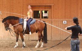 Bodenturnen auf dem Rücken eines Pferdes, während dies im Galopp seine Kreise zieht, das erfordert nicht nur ein hohes Maß an turnerischen Fähigkeiten, nein, vor allem muss man hoch konzentriert sein und sich auf die Partnerin blind verlassen können. Denn es turnen oft gleich mehrere Mädchen auf dem Rücken eines Pferdes. Bei Pyramiden und ähnlichen Figuren ist blindes Vertrauen unerlässlich. Jeder Schritt, jeder Griff auf dem Rücken eines Pferdes muss sitzen. Keine leichte Aufgabe, das bestätigte auch Trainerin Karin Baumgärtel. „Bevor eine Kür in vollem Galopp auf einem Pferd probiert wird, sind zunächst einmal unzählige Übungsstunden auf dem Bock nötig.“