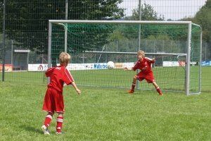 | Das ganze ist kostenpflichtig, jedoch sind in dem sehr fairen Preis auch jede Menge Extras enthalten. So werden die Kinder die fünf Tage durch sehr lecker und ausgewogen verköstigt, bekommen eine komplette Trainingsausrüstung incl. Hose, Trikot und Pullover mit Namen versehen, einen Pokal, Urkunde, Medaillen, einen Gutschein fürs Wonnemar, eine exklusive Führung durchs Schanzer Stadion, sowie einen Besuch eines Heimspiels des 1.FC Ingolstadt. Aber das Beste für die kleinen Sportler ist wohl der in dem Sommercamp enthaltene Trainingstag mit einem aktiven Spieler des 1. FC Ingolstadt. In diesem Jahr war Tobias Fink einen ganzen Tag Trainingskamerad der Hallertauer Jugend. Außerdem wurden in der Campwoche mit den Kindern verschieden Trainingseinheiten durchgeführt, ein Torwandschießen veranstaltet, jede Menge Spiele unternommen und die Geschwindigkeit des abgeschossenen Balls gemessen. |