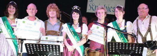 von likns nach rechts:Hopfenprinzessin Kathrin Wagner,Tobias Niedermeier, Georg Meier, Hopfenkönigin Veronika Springer, Thomas Gigl (Gewinner des Rothirschs), Vize-Hopfenkönigin Christina Schart und Ludwig Schechinger 3. Bürgermeister.