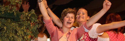 Und dann war es so weit, die Band spielte die Bedienungen auf die Bühne. „Jetzt ist's vorbei, aus und vorbei.“ Unter der jubelnden Menge wurden sie, die nicht nur immer eine kühle Maß, sondern oft auch einen lustigen Spruch auf den Lippen hatten, verabschiedet. Auch die Wirtsfamilie Axthammer sagte „servus“ und wünschte den Festbesuchern noch eine fröhliche letzte Stunde.