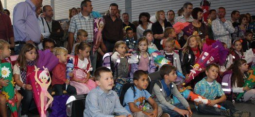 97 Erstklässler konnte die neue Rektorin Ute Zellhöfer in der Grundschule Wolnzach willkommen heißen. Beladen mit Schulranzen und großer Schultüte ging es für die Kleinen zunächst in die Preysinghalle. Dort bereiteten die Zweitklässler ihnen zusammen mit ihren Eltern einen warmen Empfang. Gespannt hörten die Jungs und Mädchen dem einstudierten Lied zu, bevor sie zum ersten Mal mit ihrer Lehrerin Bekanntschaft machen durften.