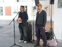 In seiner Eröffnungsrede vermied es Steffen Kopetzky aufgrund dieser Vielfältigkeit denn auch, auf einzelne Werke explizit einzugehen. Stattdessen verlas er die Namen der teilnehmenden Künstler, die größtenteils in der Kulturhalle waren. Professor Tal R war zur Vernissage ebenfalls persönlich anwesend, hielt aber seinerseits keine Einleitungsrede.