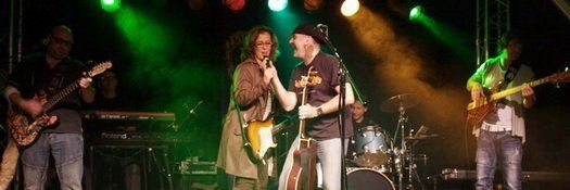 Aber die Frankfurter rockten nicht nur auf der Bühne, sondern nach einer kurzen Pause war plötzlich das Publikum gefordert. Auf die Frage, wer denn zusammen mit Bryan Adams „When you’re gone“ gesungen hat, reagierte Adele Götz am schnellsten. Ohne zu wissen was ihr nun bevorstand betrat sie die Bühne und stellte gleich einmal klar „Ich kann nicht singen.“ Doch es half alles nichts. Unter dem Applaus des Publikums und zusammen mit Frontmann Bobby Stöckers musste sie nun ran ans Mikro.