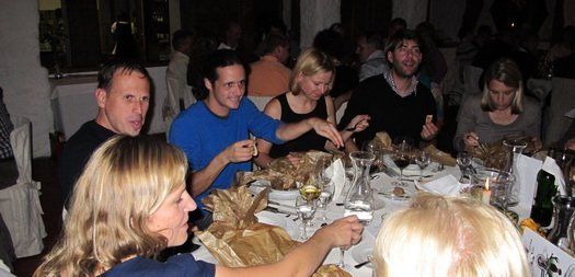 High Cuisine im Stile und vom Niveau des Sternerestaurants Tantris servierte am Sonntagabend Christian Kroiß, Chef des „Zeidlmaiers“, seinen rund 100 Gästen. Von 18.30 bis 23 Uhr wurde gegessen: 7 Gänge ohne Völlegefühl. Als Verdauungsbeschleuniger unterhielt Philipp Weber mit Groteskem rund um Lebensmittel und Zivilisationsküche.