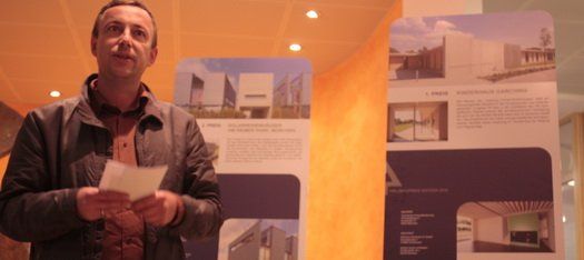 Auf den einzelnen Tafeln werden verschiedene Bauprojekte rund um den Holzbau vorgestellt. Natürlich geht es um mehr als nur Holzbau. Es geht auch um den Umweltschutz. Denn Holz ist nicht nur ein nachwachsender Rohstoff, sondern auch eine energiegünstige Variante Häuser zu bauen und sieauch wieder zu entsorgen. So konnte man sich umso mehr freuen, dass Matin Aicher, Holzbaupreisträger 2010, die Vorzüge des Rohstoffes erläuterte.