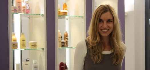 In den Farben Braun und Violett gehalten, ist in den schönen, hellen Räumen Platz zum Wohlfühlen und Entspannen. Der wichtigste Grundsatz der jungen dynamischen und kompetenten Friseurmeisterin lautet: Haare sind wertvoll, sie demonstrieren Mode-Feeling und vermitteln Schönheit. Deshalb arbeitet sie mit viel Freude am Umgang mit Mensch und Haar und stellt den Besuch in ihrem Salon unter die Maxime: Entspannen – Beleben - Schönheit genießen. Ob klassisch, trendig, frech oder festlich (Hochzeitsfrisuren!) – die Kunden werden perfekt beraten, welche Frisur zu Ihrem Typ passt. Ihrem Haar zuliebe verwendet sie ausschließlich hochwertige Produkte von L’ORÉAL.