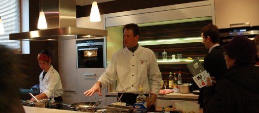 Eine weitere Tradition ist das „Schaukochen“ von Paul Grasmeier, der aber nicht nur Köstlichkeiten servierte, sondern auch gleich die Vorzüge des Dampfgarers erklärte und Tipps und Tricks parat hatte.
