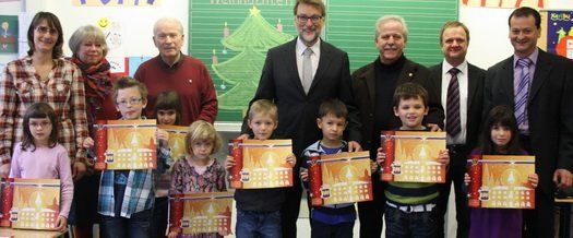 Jedes Jahr aufs Neue sind sie heiß begehrt, die Adventskalender des Lions-Clubs. Insgesamt wurden dieses Jahr 3500 verkauft. Auch die 45 Klassen der Adolf-Rebl-Schule konnten sich über je einen Kalender freuen. Zusammen mit Vertretern des Fördervereins und des Lions-Clubs überreichte Landrat Martin Wolf die Kalender. „Der Landkreis Pfaffenhofen leistet mit dem Erwerb der Kalender auch einen kleinen Beitrag zur Unterstützung dieser Projekte. Gleichzeitig bereiten wir mit den Kalendern den Kindern an den Adolf-Rebl-Schulen eine kleine Freude“, so Wolf.