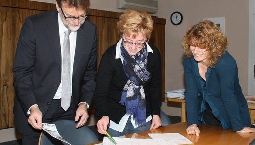 v.l.n.r.: Landrat Martin Wolf, Alice Köstler-Hösl und Ursula Schlosser besprechen Details zum Messeauftritt
