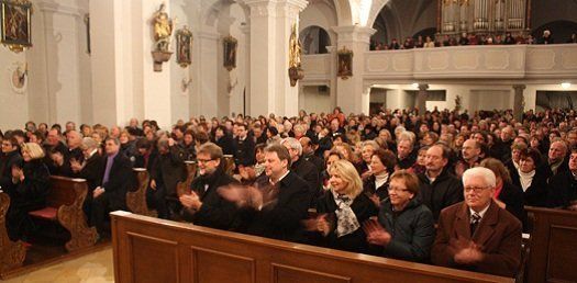 Besonders hervorzuheben, wenn man unter der grandiosen Leistung überhaupt jemand herausgreifen darf, sind die beiden Solisten. Paul Pichlmaier aus Pfaffenhofen und Andreas Rettler aus Saarbrücken durch ihre klaren, hellen und lupenreinen Stimmen. Ihr Vortrag von „Ich freue mich in dir“ und „Mariä Wiegenlied“ waren wirklich beeindruckend. So hell und fein erklang die Stimme eines Einzelnen in der Kirche und berührte auch noch die Herzen der Menschen in den letzten Reihen.