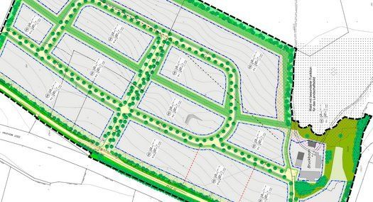 Auch auf die Begrünung spielt eine große Rolle. So stellte Norbert Einödshofer ein stimmiges Konzept zur Erschließung und Begrünung des Gebietes vor. Besonders die 14 Meter breiten Straßen sollen durch Bäume eingefasst werden. Diese bieten aber nicht nur Raum für Bäume, sondern bieten auch viel Platz für parkende LKWs.