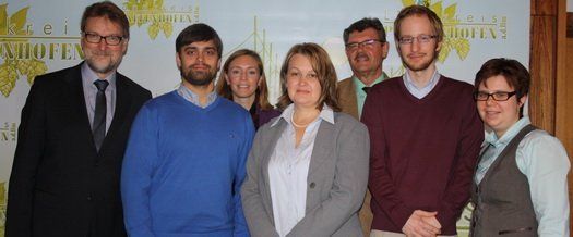v.l.n.r.: Landrat Martin Wolf, Rechtsreferendar Frank Birk, Abteilungsleiterin für Kommunalwesen, Natur-, Hochwasserschutz und juristische Grundsatzfragen Sabrina Birnbaum, Rechtsreferendarin Carola Küspert, Abteilungsleiter für Soziales, Sicherheit und Ordnung Kurt Förster, Rechtsreferendar Markus Lackermair und Ausbildungsleiterin Alexandra Schönauer.