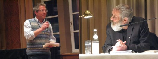 Höhepunkt der Veranstaltung war sicher die "unverlangte Zugabe", die Lesung von Jan Neumanns groteskem 1-Personen-Stück "Knolls Katzen", in dem Herr Wagner im Theatersaal kurz vor Vorstellungsbeginn per Handy zu klären versucht, wer in seiner Familie eigentlich in den vergangenen 4 Wochen die Nachbarskatzen gefüttert habe oder - wenn nicht - wie man diese entsorgen könne, bevor Familie Knoll wieder aus dem Urlaub zurückkäme.