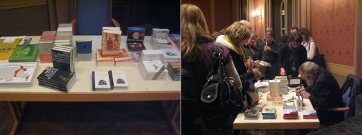 Typ ist er schon, das kann man nicht anders sagen. Mit seinem Rauschebart und seiner signifikanten Stimme, in einem eindeutig Hamburger Slang nimmt er das Publikum sofort in Beschlag. Der Mann hat Routine in der Durchführung derartiger Veranstaltungen, geht zumindest scheinbar spontan auf Reaktionen ein, ist dabei aber ganz offensichtlich auch sehr konzentriert und angespannt, wie der etwas rauhe Umgang mit Fotografen zeigt. "Der Wert einer solchen Lesung ist nicht das Erzählen, sondern das Zuhören." Diese Aussage unterstreicht die Sichtweise des Harry Rowohlt.