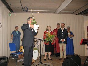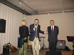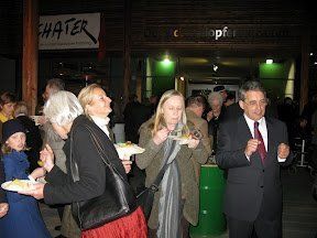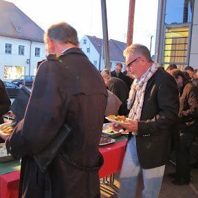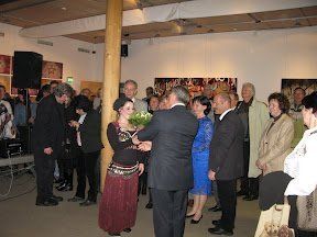 Die Besucher der Vernissage zeigten sich beeindruckt, begeistert von Noureddine Chaters Exponaten, und als Tüpfelchen auf dem I der Kunst durfte ein köstliches arabisches Büffet, arrangiert vom Münchener Restaurant „Sahara City“ und der Familie Sahin (Muck's), nicht fehlen. Die Gruppe „Orient Orient“ begleitete den Abend musikalisch mit arabischem Folk-Jazz und die junge Bauchtänzerin Semira Saabet verzauberte mit dem Tribal-Fusion-Tanz „La Révolutionaire“. Auch die Lagebeschreibung der Staaten des nordafrikanischen Frühling durch Konsulin Prof. Männle und dem Gastgeber nahm einen angemessenen Raum ein. Als der Künstler selbst zum Publikum sprach (Übersetzung aus dem Französischen durch Nathalie Ponsot), wurde um so mehr die neue Generation erlebbar, die prowestlich denkt und zu den Grundrechten steht. Der Künstler wurde als sehr sympathisch wahrgenommen. Die Zeit der Partnerschaften mit den nordafrikanischen Staaten kann beginnen. Mit Noreddine Chater hat Wolnzach einen ersten Schritt unternommen.