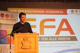 Viele positive Botschaften schon zu Beginn des Kongresses. Und man will auch diesen Weg weitergehen. Welche Möglichkeiten es hier gibt, erläuterte Prof. Dr. Ernst Schimpff. „Vor allem der Sonne wird dabei eine zentrale Bedeutung zu kommen“, so Schimpff. Mit rund 115 W/m² ist sie die einfachste und effektivste Möglichkeit, Energie zu gewinnen. Seit 1990 befindet sich die Photovoltaik auf einem Siegeszug, den kaum ein Politiker für möglich gehalten hätte. Schon jetzt gibt es ganze Siedlungen, die sich komplett über Photovoltaik selbst versorgen.