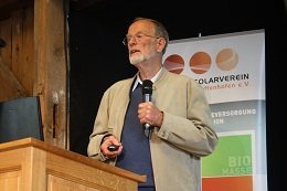 Dennoch darf man nicht nur an die Erzeugung denken. Dies ist nur die eine Seite der Medaille. Die andere Seite stellen die Niedrigenergiehäuser dar. „Rund 70% der Energie wird derzeit zum Heizen der Gebäude verwendet“, so Prof. Dr. Schimpff. Hier liegt erhebliches Potential. Die energetische Sanierung muss also an erster Stelle stehen. „Mit einer modernen Gebäudehülle kann man extrem viel einsparen. Nur noch etwa 10 KW muss man beispielweise bei einem Sonnenhaus zuheizen“, erläuterte der Professor. Doch auch ein Plusenergiehaus ist heute schon möglich.