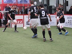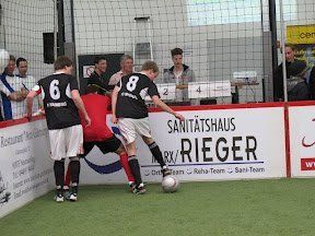 Zum Auftakt spielten erst die Kindermannschaften in der zum Fußballstadion zweckentfremdeten Werkstatt einige Spiele, bei denen besonders die Eltern des Fußballnachwuchses mitfieberten. Für jeden der kleinen Spieler gab es eine Medaille, auf die sie mit Recht stolz sein können.