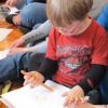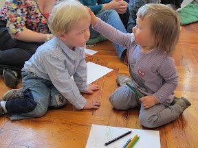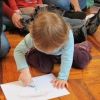 Die Kleinen konnten von diesem Lied gar nicht genug bekommen, immer wieder bat eines „numoi singa!“ Am Ende durfte jedes ein großes Herz ausmalen und der Mama schenken und auch darauf stürzten sich alle mit großer Begeisterung.
