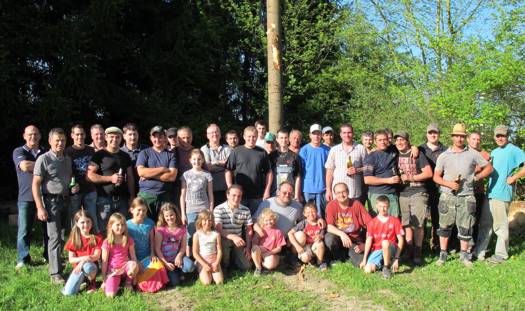 Auch in diesem Jahr stellten sie nur mit ihrer Muskelkraft einen neuen Maibaum auf, was bei den Temperaturen allen den Schweiß aus den Poren trieb. Um 16.00 Uhr begann das Maibaumaufstellen und um 17.30 Uhr stand der neue Baum.
