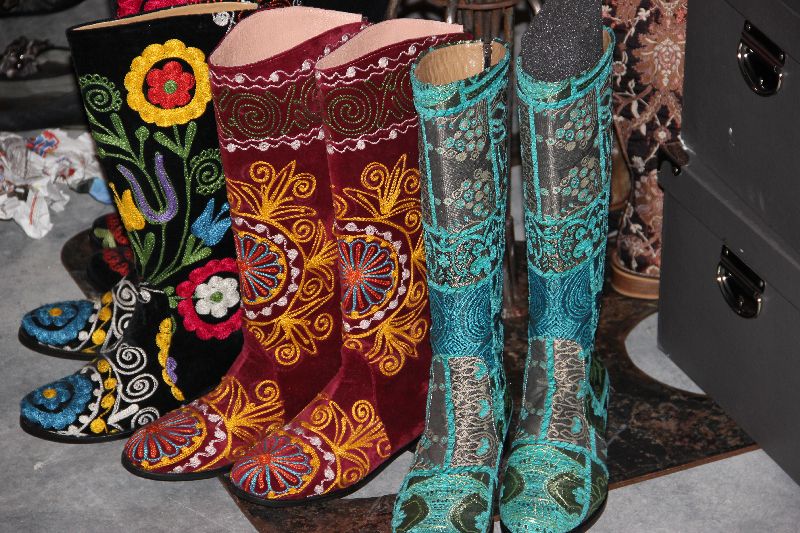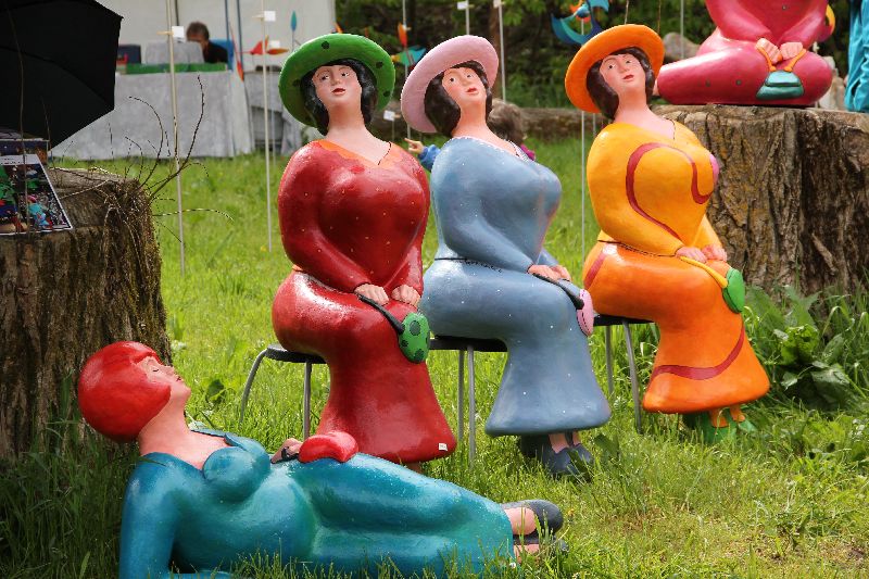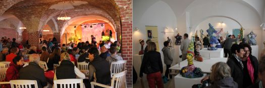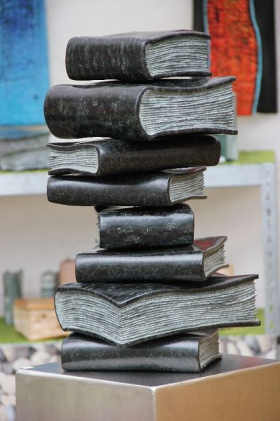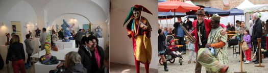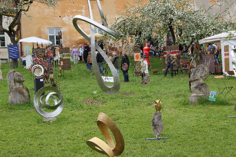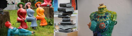 Neben den Verkaufsständen gab es auch bei der Jubiläums-Veranstaltung wieder Sonderschauen - Veranstalterin Margit Grüner selber mit wirklich tollen Mosaikplastiken in "Le Donne" sowie Annette und Gerd Wandrer aus Berlin mit genreübergreifenden Objekten Plastiken, Malerei und Grafiken - und jede Menge Workshops für Jung und Alt. Erstaunlich ist immer wieder, welche ausgefallenen kunsthandwerklichen Objekte den Besuchern der "Kunst im Gut" angeboten werden: Holzskulpturen von Michael Pickl, die - obwohl statisch - so voller Emotion zu sein scheinen, Steinbücher von Sebastian Schmidt (www.Steinbuchwerkstatt.de) oder Lederstiefel mit Besatz aus Hochzeitsteppichen von www.not-couture.de (letztere beiden siehe Fotostrecke).